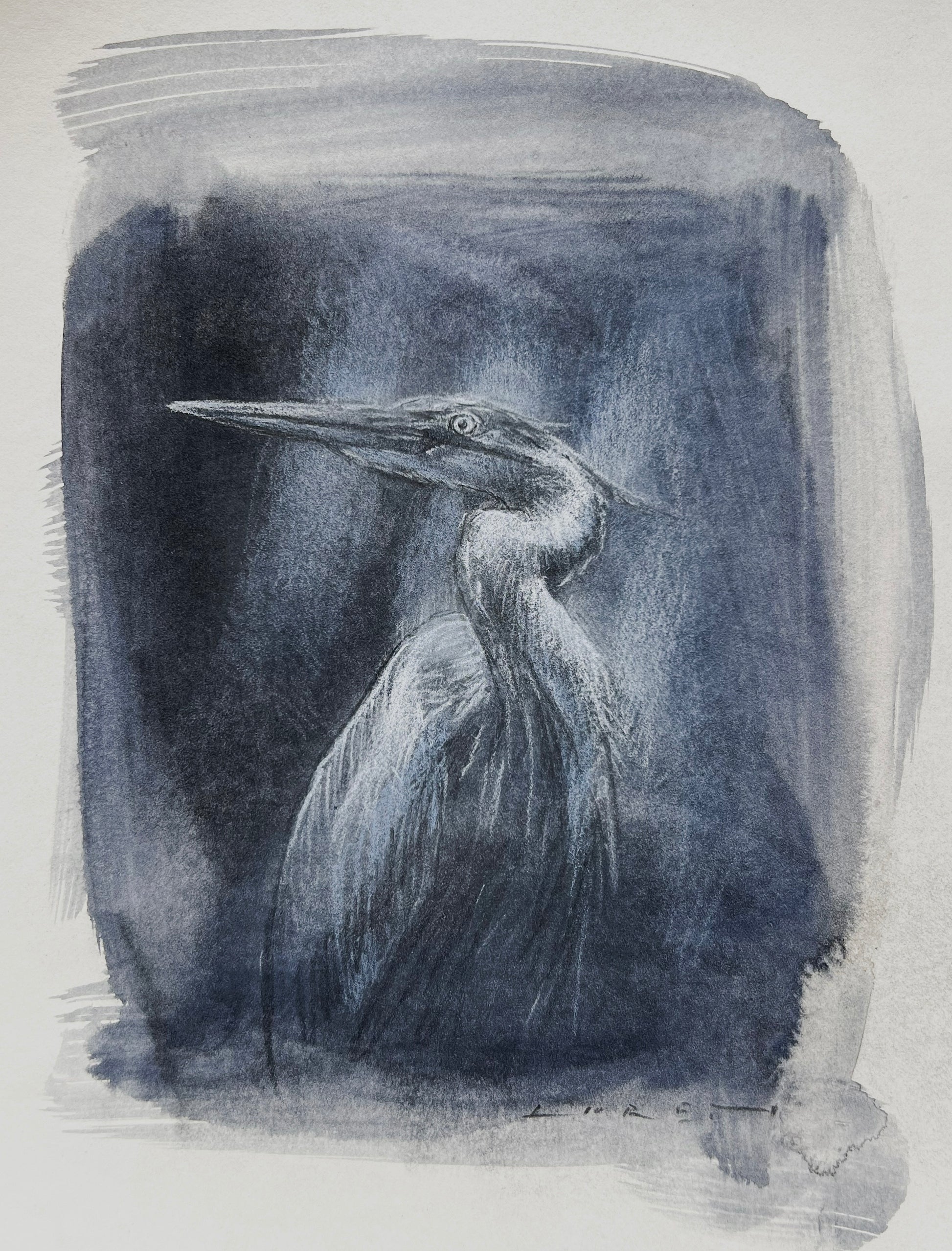Original Mixed Media painting of a Heron on paper by Pensacola artist, Loren Miller.